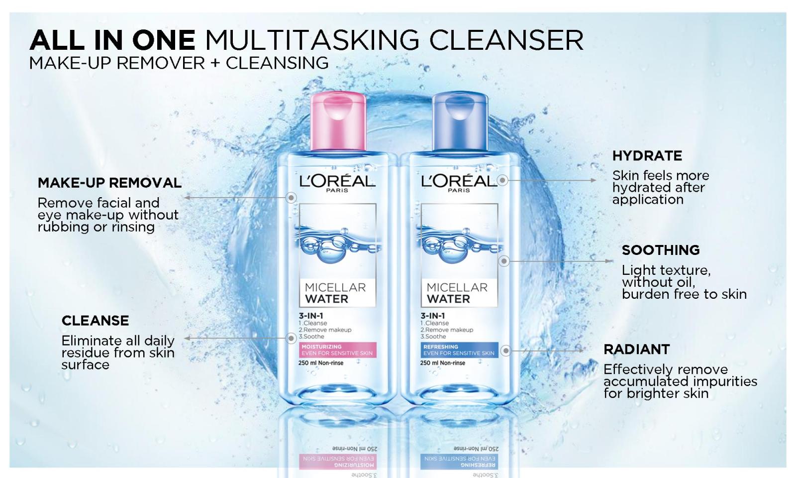 میسلار واتر لورآل مخصوص پوست خشک و حساس محصولی ملایم و در عین حال قدرتمند است که بهراحتی تمامی مواد آرایشی حتی محصولات ضدآب را پاک میکند، بدون آنکه باعث خشکی یا تحریک پوست شود.